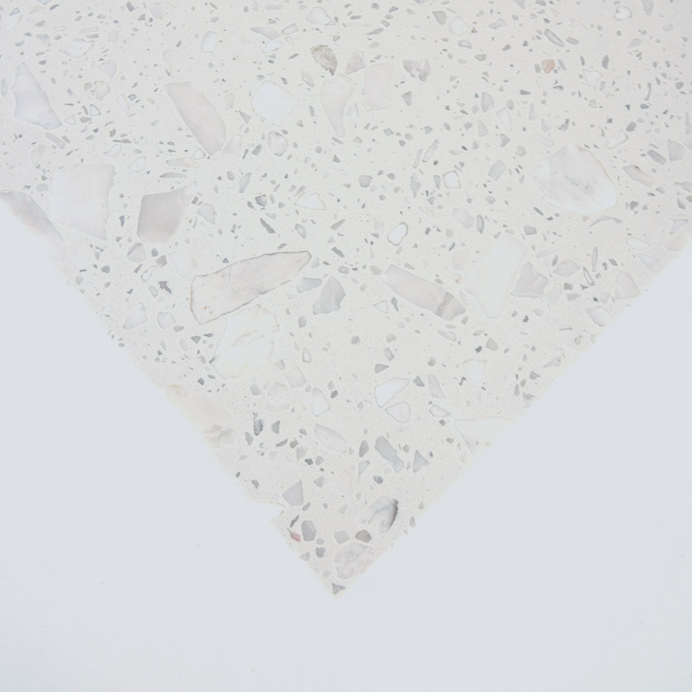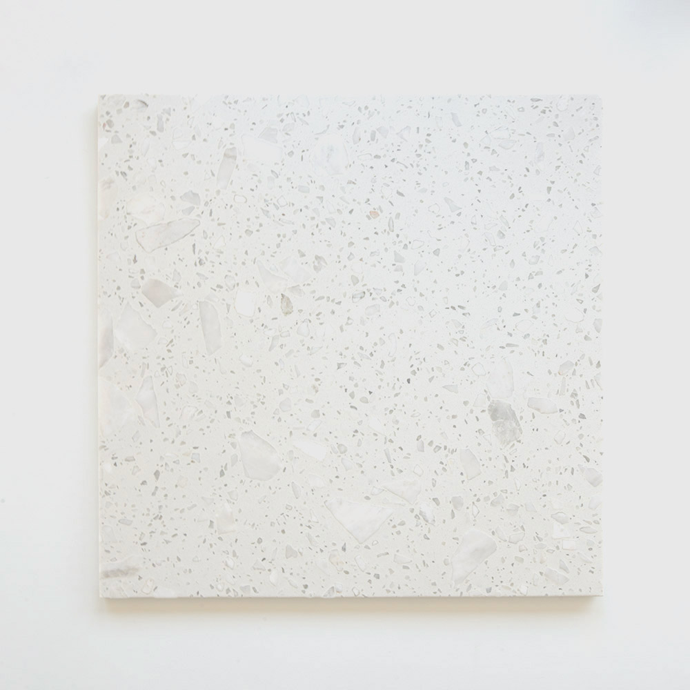 Terazzeri features dimensional mesh-backed sheets and large format leathered field tiles. Each piece is filled with natural marble, granite, and other recycled stone. Every tile showcases its own unique tones, texture, and variation.