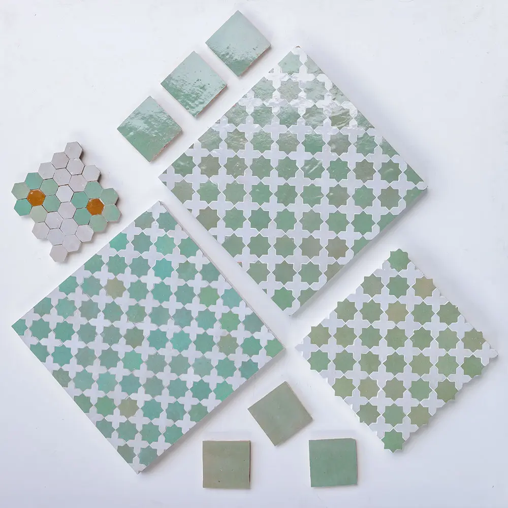 Hand-painted in Morocco, our zellige basics are exclusive tile solutions. Colorful and customizable, use to create both dramatic and traditional designs. Zellige tiles come loose for ease in installation.