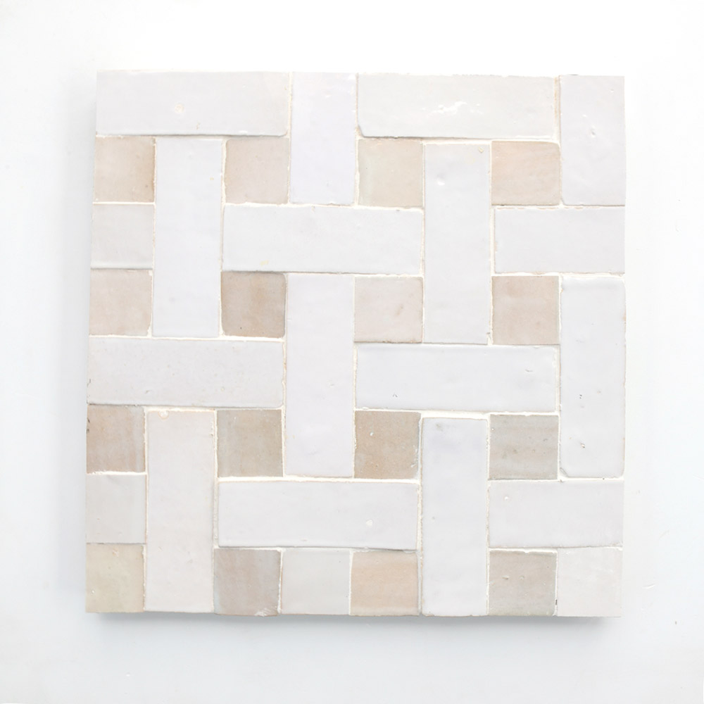 Hand-painted and hand-crafted in Morocco, these decorative tiles are suited to accent counters, bathrooms, vanities, and window surrounds. Available in a wide selection of completely customizable patterns and colors, all are designed to make an impact. Zellige tiles come pre-assembled in light panel sheets for simplifying installation.