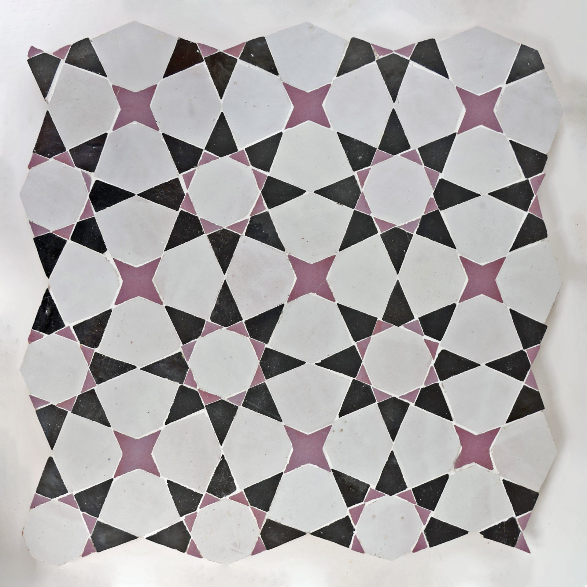 Hand-painted and hand-crafted in Morocco, these decorative tiles are suited to accent counters, bathrooms, vanities, and window surrounds. Available in a wide selection of completely customizable patterns and colors, all are designed to make an impact. Zellige tiles come pre-assembled in light panel sheets for simplifying installation.