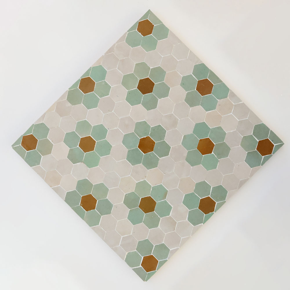 Hand-painted and hand-crafted in Morocco, these decorative tiles are suited to accent counters, bathrooms, vanities, and window surrounds. Available in a wide selection of completely customizable patterns and colors, all are designed to make an impact. Zellige tiles come pre-assembled in light panel sheets for simplifying installation.