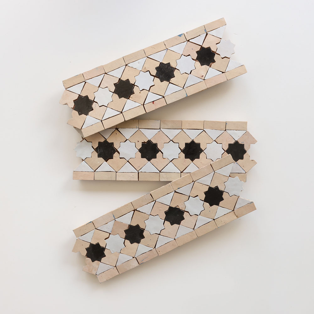 Hand-painted and hand-crafted in Morocco, these decorative tiles are suited to accent counters, bathrooms, vanities, and window surrounds. Available in a wide selection of completely customizable patterns and colors, all are designed to make an impact. Zellige tiles come pre-assembled in light panel sheets for simplifying installation.