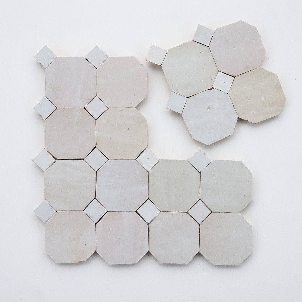 Hand-painted and hand-crafted in Morocco, these decorative tiles are suited to accent counters, bathrooms, vanities, and window surrounds. Available in a wide selection of completely customizable patterns and colors, all are designed to make an impact. Zellige tiles come pre-assembled in approx. 8X8 inch sheets for simplifying installation.