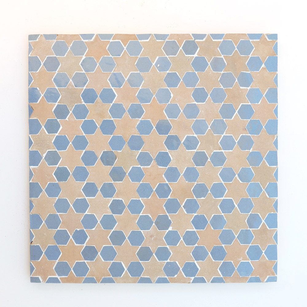 Salé Zellige Mosaic Tile – Blue Thistle is Hex and Earth is Star
